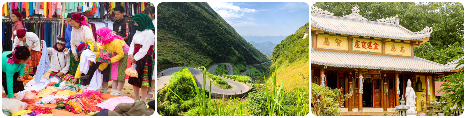 Đến với Hà Giang du khách được trải nghiệm và chiêm ngưỡng Núi Đôi Cô Tiên, đèo Mã Pí Lèng, cao nguyên đá Đồng Văn, Dinh thự họ Vương, Cột cờ Lũng Cú,..