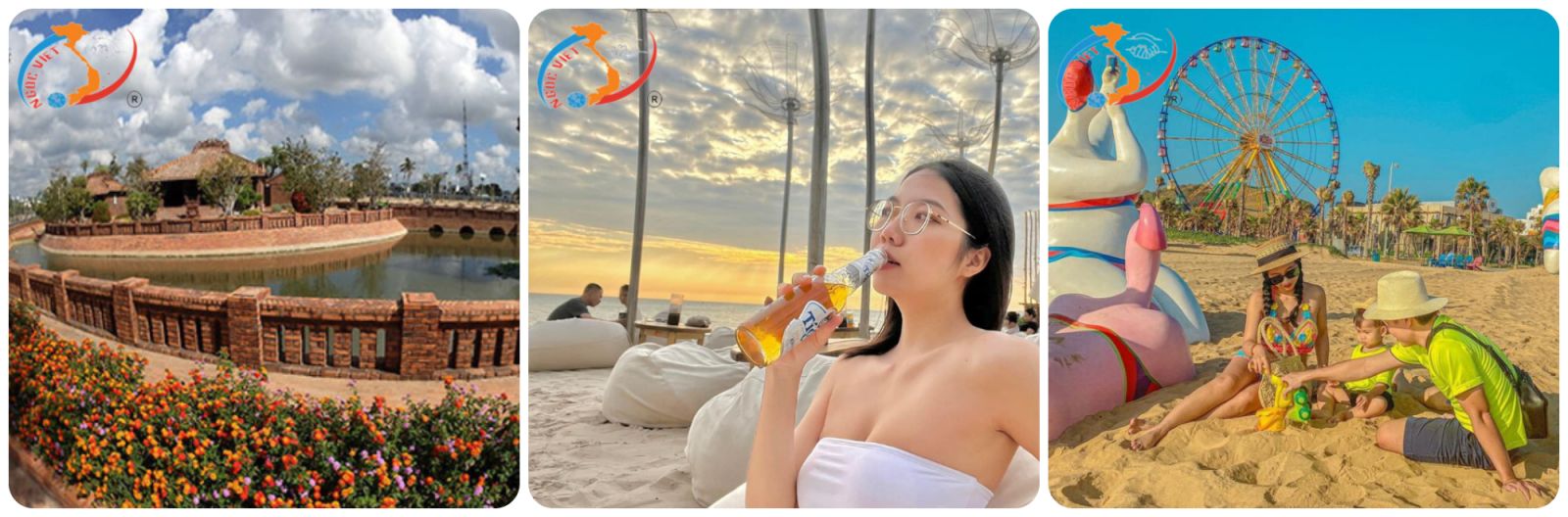 05h00: Xe và HDV Ngọc Việt Travel & Event đón khách tại điểm hẹn. Khởi hành đi Phan Thiết trên tuyến cao tốc mới Dầu Giây - Phan Thiết. Trên đường đi, đoàn cùng HDV tìm hiểu các địa danh đoàn đi qua, tham gia vào các trò chơi hoạt náo vui nhộn trên xe. (Có quà tặng: Balo du lịch cao cấp, dù (ô) du lịch, gối hơi du lịch, quà bánh...)